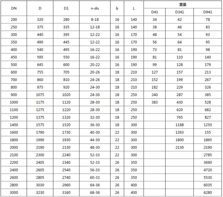 電動(dòng)通風(fēng)蝶閥型號(hào)表及重量表: